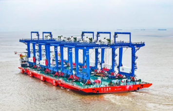 4月30日,上海振华重工承制的中远海运港口秘鲁钱凯港一期工程港机项目首批5台双悬臂自动化轨道吊成功发运。