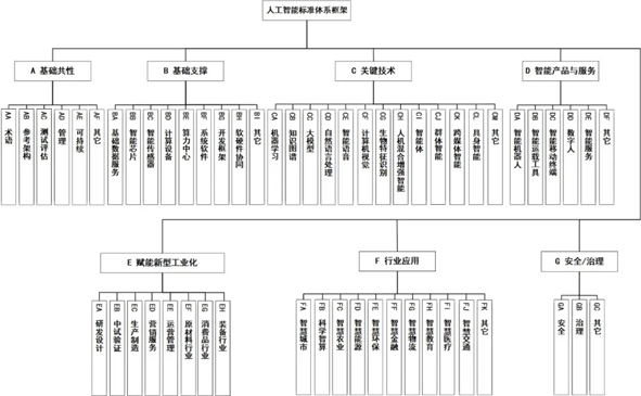 1. 术语标准。规范人工智能相关技术、应用的概念定义,为其它标准的制定和人工智能研究提供参考,包括人工智能相关术语定义、范畴、实例等标准。