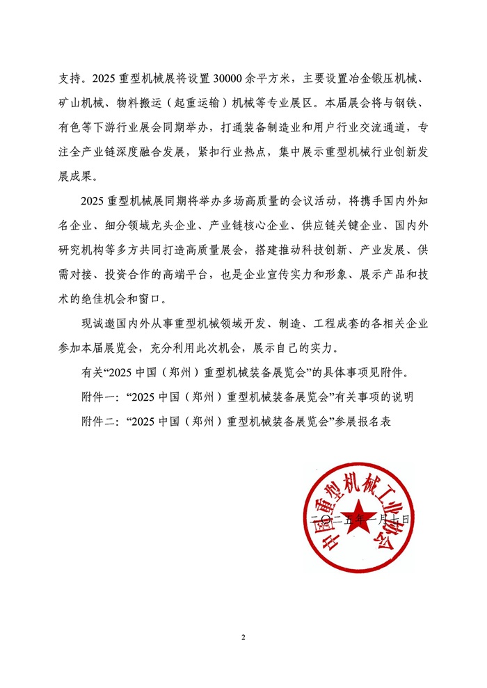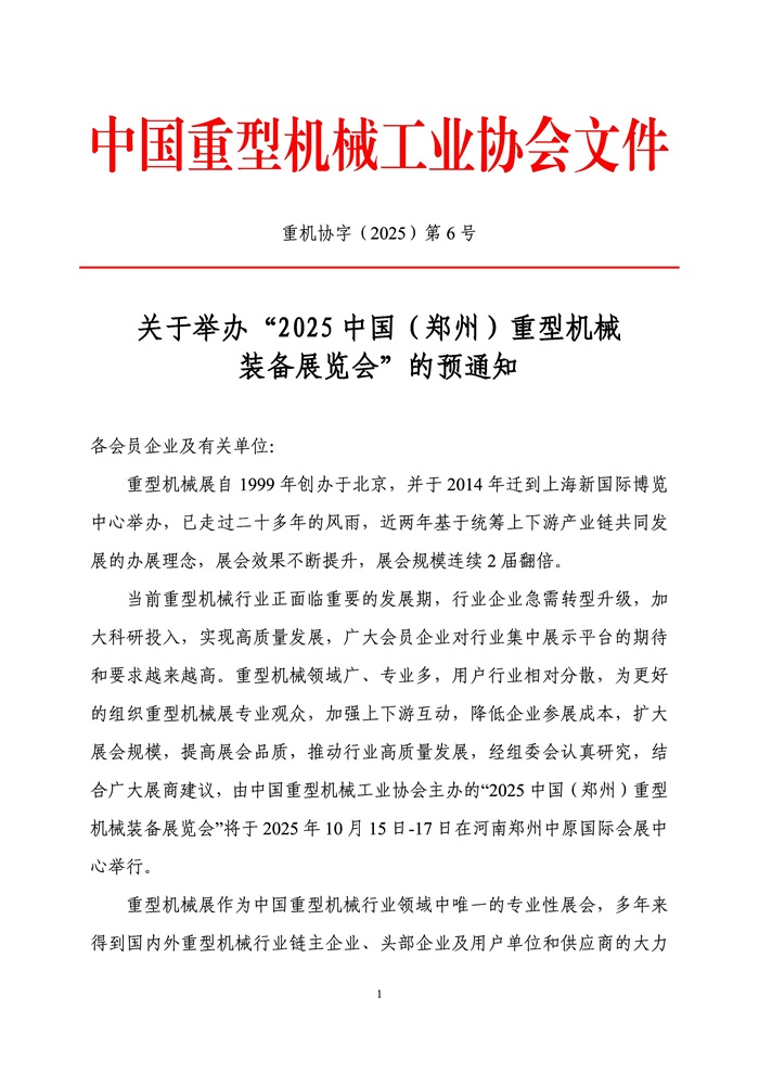 关于举办“2025中国(郑州)重型机械装备展览会”的预通知