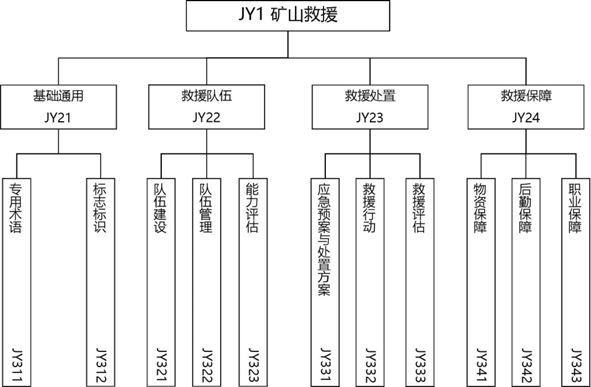 (十四)矿山救援。矿山救援工作是守护矿工生命安全的最后一道防线。矿山救援标准子体系围绕矿山救援需求,从规范矿山救援队伍建设、救援保障和技术服务等方面建立起矿山救援工作的标准支撑体系。