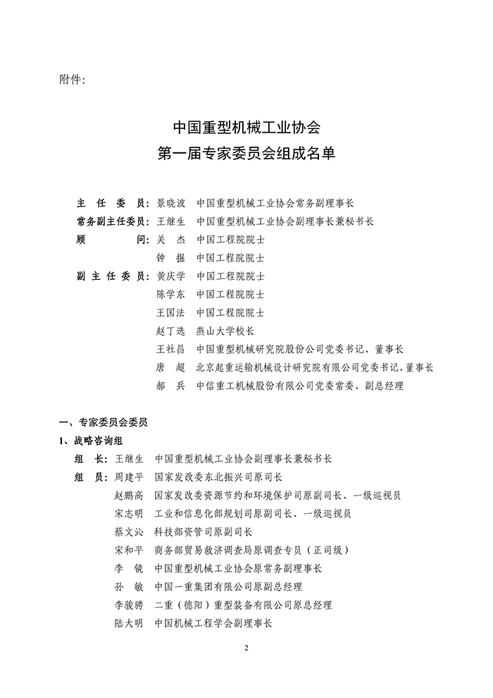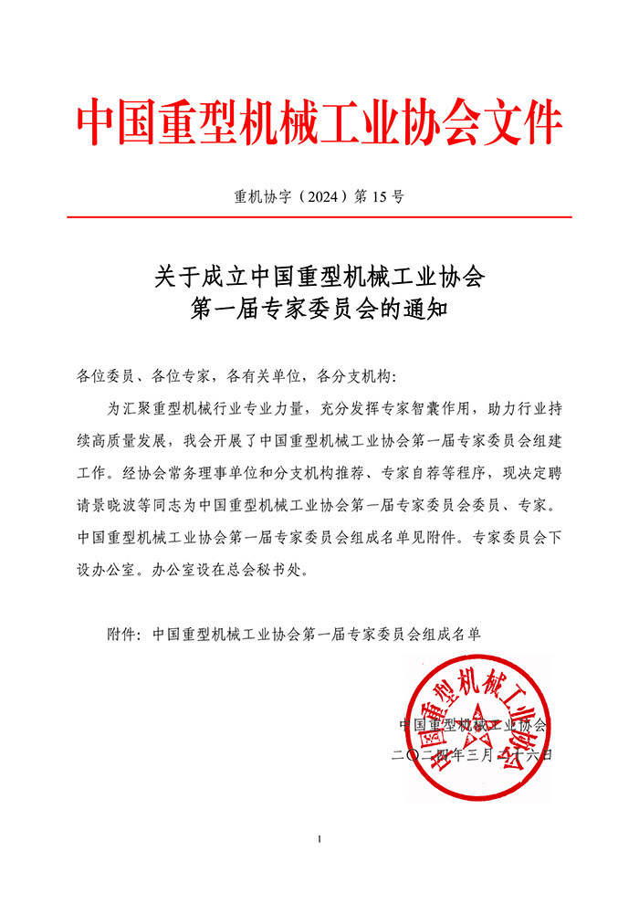 关于成立中国重型机械工业协会第一届专家委员会的通知