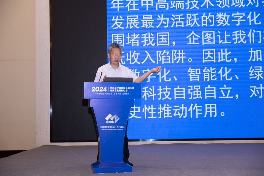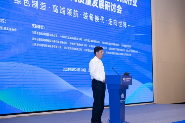 景晓波为大会致辞,他首先向各位领导、嘉宾和全体代表表示热烈的欢迎和衷心的感谢,介绍了大会主题、内容和愿景。他强调,重型机械行业要毫不动摇坚持高质量发展这个新时代的硬道理,保持战略定力,坚定战略自信,加快科技成果转化和规模化应用,发展新质生产力,大力推进新型工业化发展。他表示,加快产品更新换代是推动高质量发展的重要举措,也是重型机械、相关行业发展的历史机遇,如何将其有效地落实转变为发展动力更是一项重大研究课题。我们要根据方案内容,聚焦数字化、智能化、绿色化和特色化等新技术,加快推动重机行业高端、智能、绿色、安全、高效升级,为中国产业升级和高质量发展做出积极贡献。