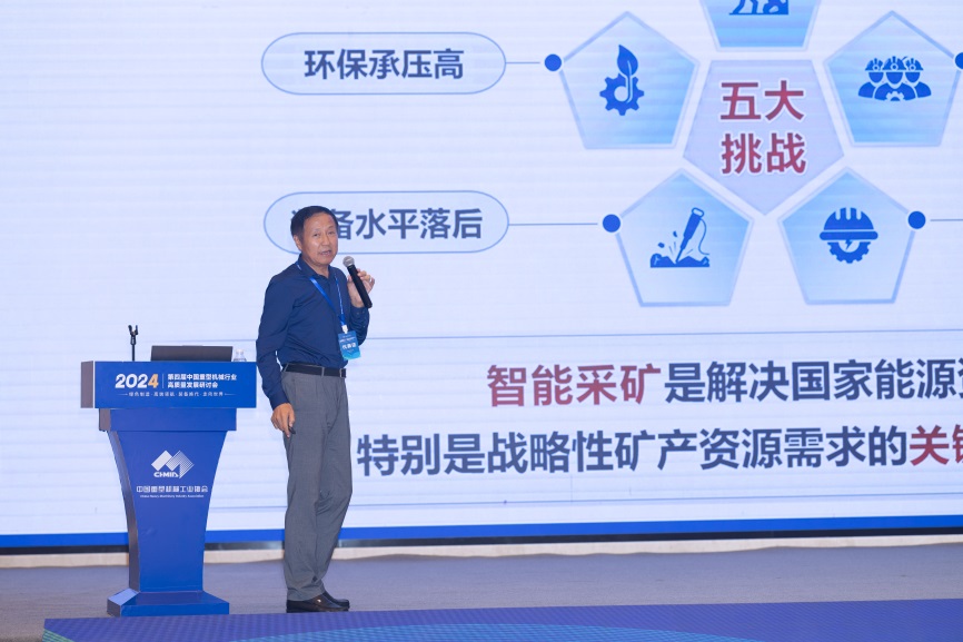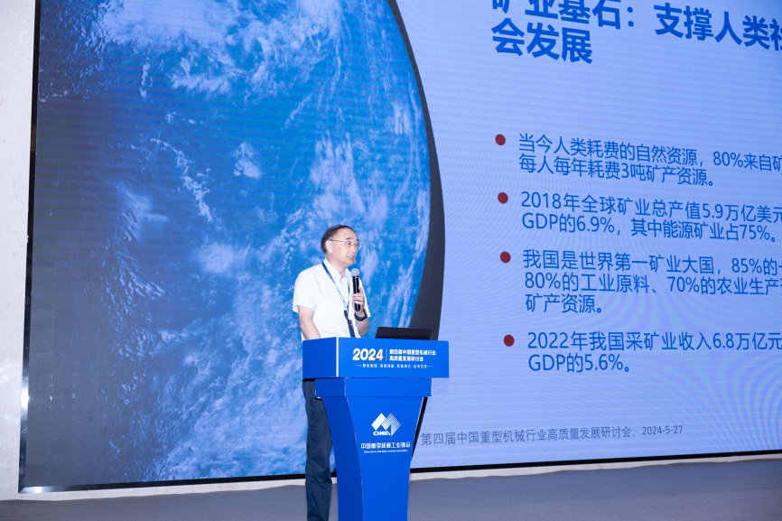 中国工程院院士、中国矿业大学(北京)原校长葛世荣院士做了《矿山机械智能化及输送装备创新——兼谈重型机械数智化》的报告,报告指出我国矿山数量多、开采难度大,智能化是实现安全采矿的重要路径,机器人化是推动连续高效采矿的关键引擎。报告从煤矿机器人化发展历程衍生至地下采矿机器人化装备与露天采矿机器人化装备发展现状,提出了重型机械行业“机器人化”、“低碳化”、“体系化”和“高端化”新四化发展方向。