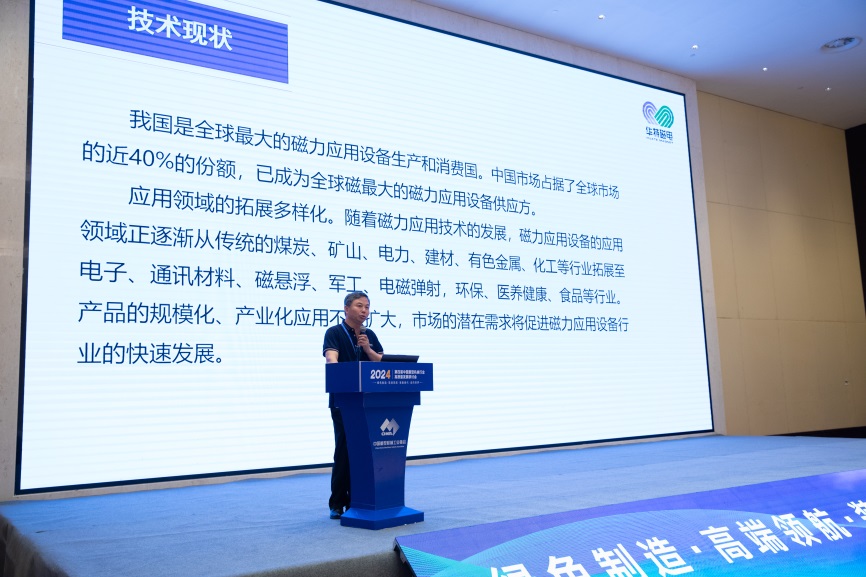 山东华特磁电科技股份有限公司常务副总裁刘风亮做了《大型智能低碳磁电选矿技术与装备》的报告,介绍了大型智能立环高梯度磁选机、电磁浆料高梯度磁选机、低温超导磁选机、XRT系列智能传感分选机、智能光电分选机、提精降渣磁选机、粉矿风力干选机与磁悬浮鼓风机等矿山装备的技术现状与创新发展。