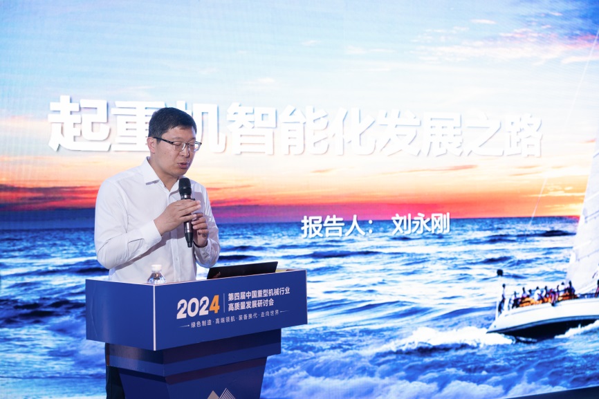 卫华集团有限公司总工程师刘永刚做了《起重机智能化发展之路》的报告,介绍了智能化起重机的技术基础,分享了起重机智能化的解决方案,分析了智能化技术创新方向、行业需求与市场规模。