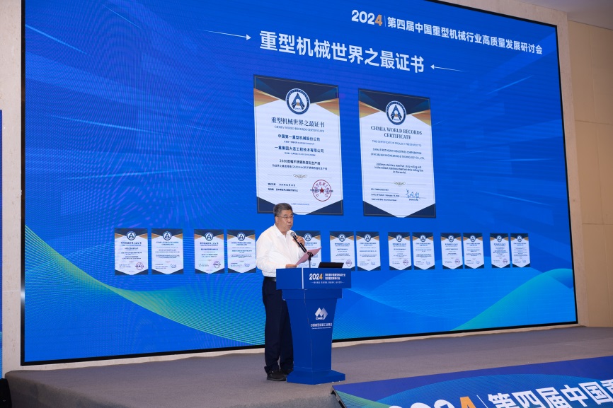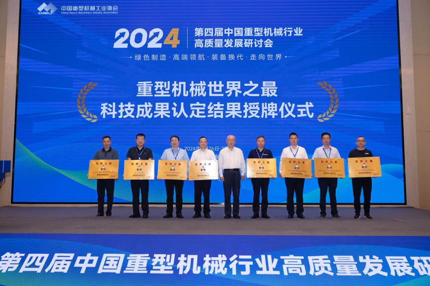 大会举办了2023年重型机械世界之最科技成果认定授牌仪式,协会副理事长唐超宣读了重型机械世界之最科技成果认定结果。景晓波为获得认定的八项世界之最成果的企业颁发牌匾。