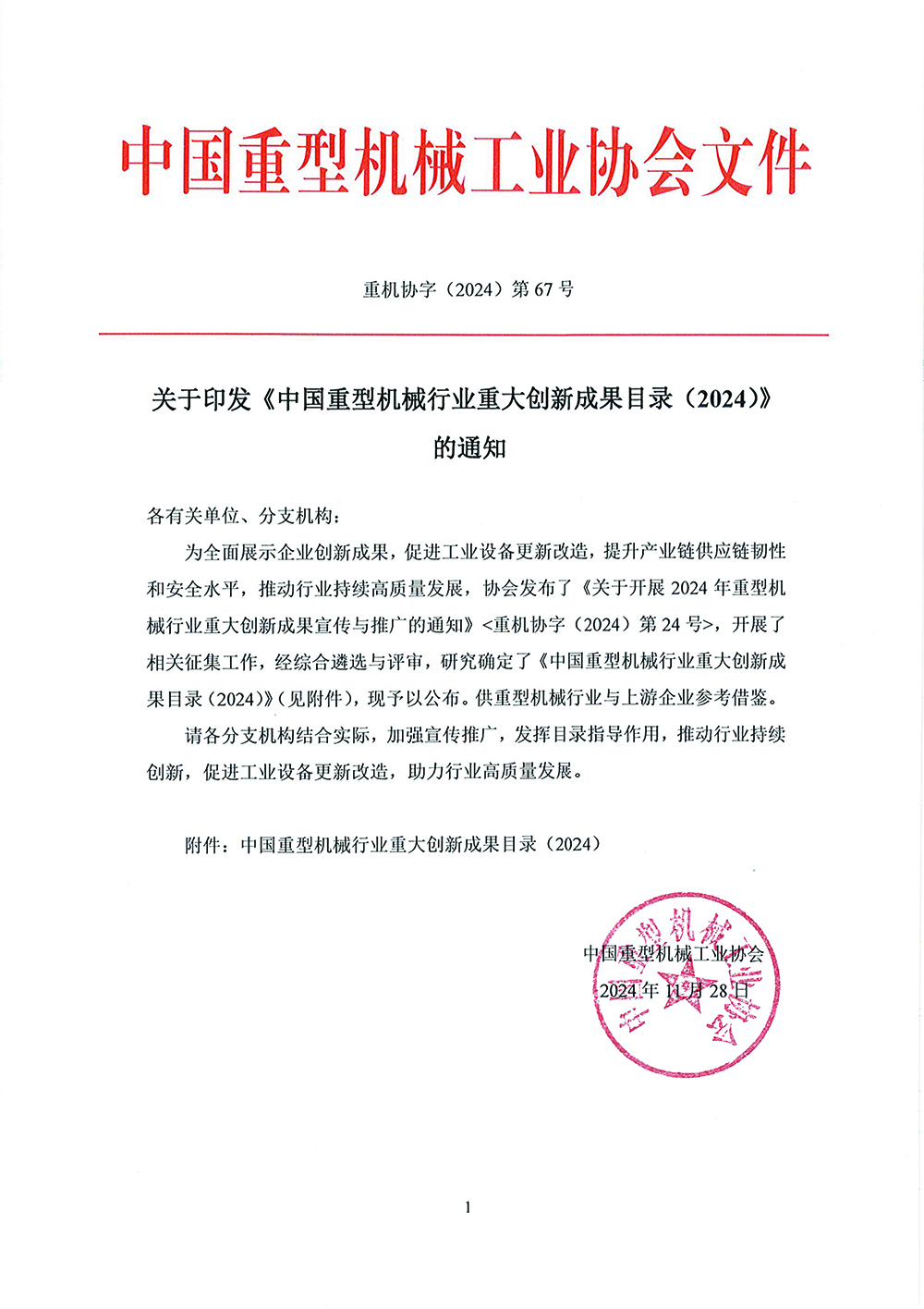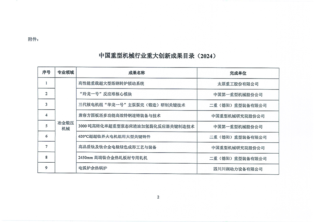 关于印发《中国重型机械行业重大创新成果目录(2024)》的通知