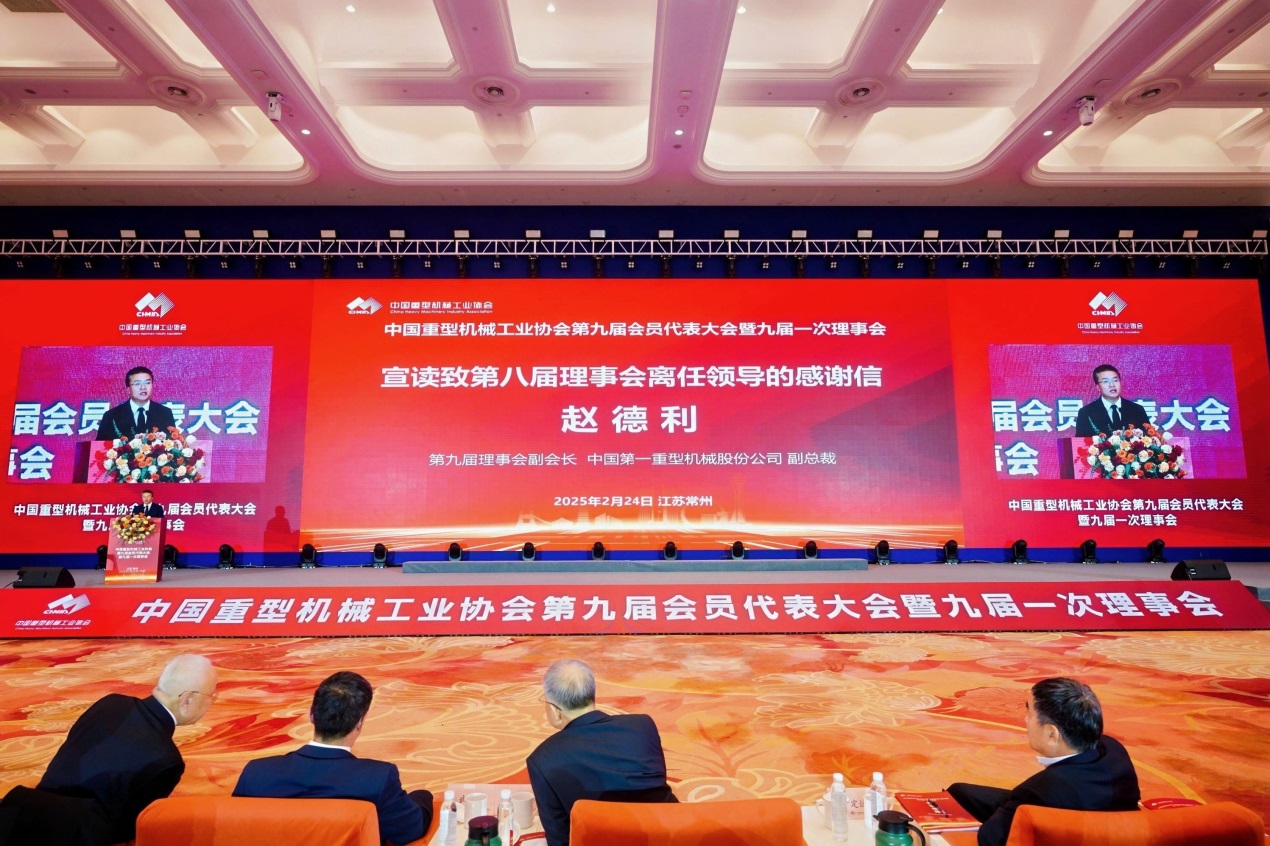 协会第九届理事会副会长、中国第一重型机械股份公司副总裁、总工程师赵德利宣读了《致第八届理事会离任领导的感谢信》。信中承载了行业同仁和第九届理事会对第八届理事会离任领导诚挚的感谢、深深的敬意与满满的感动!