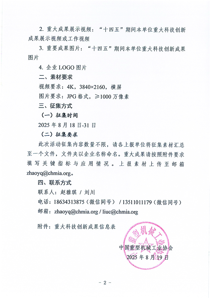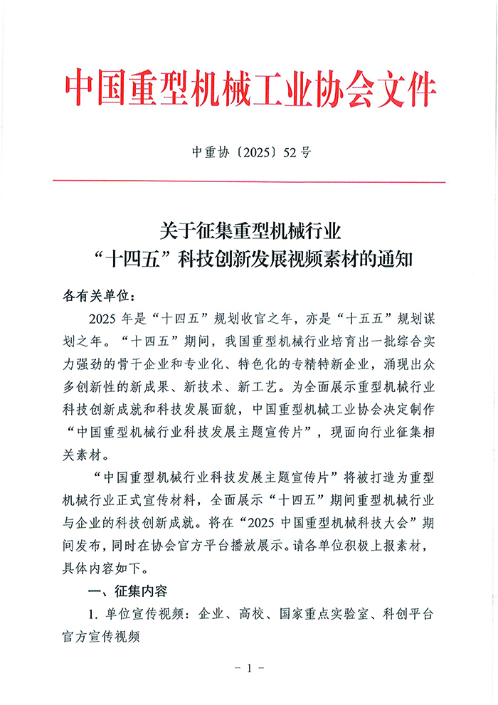 关于征集重型机械行业“十四五”科技创新发展视频素材的通知
