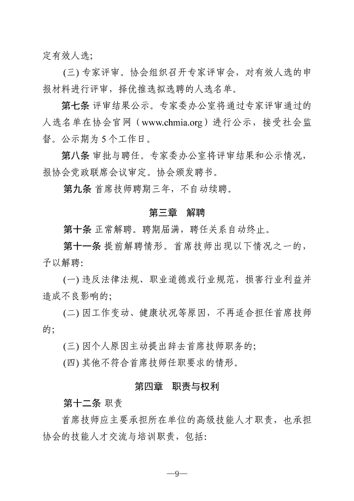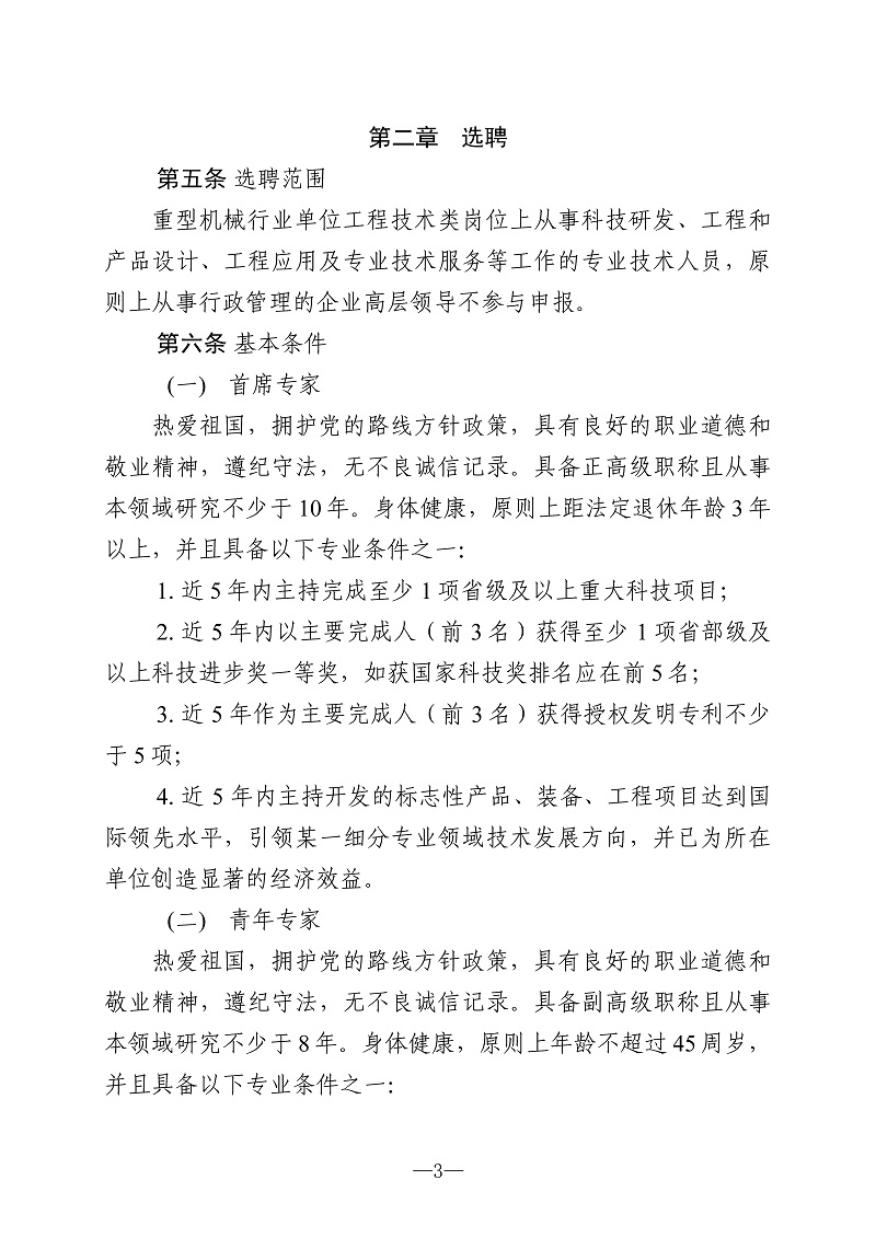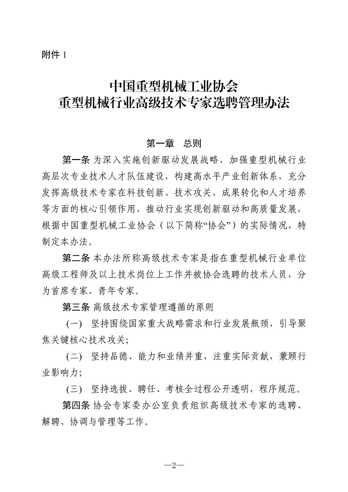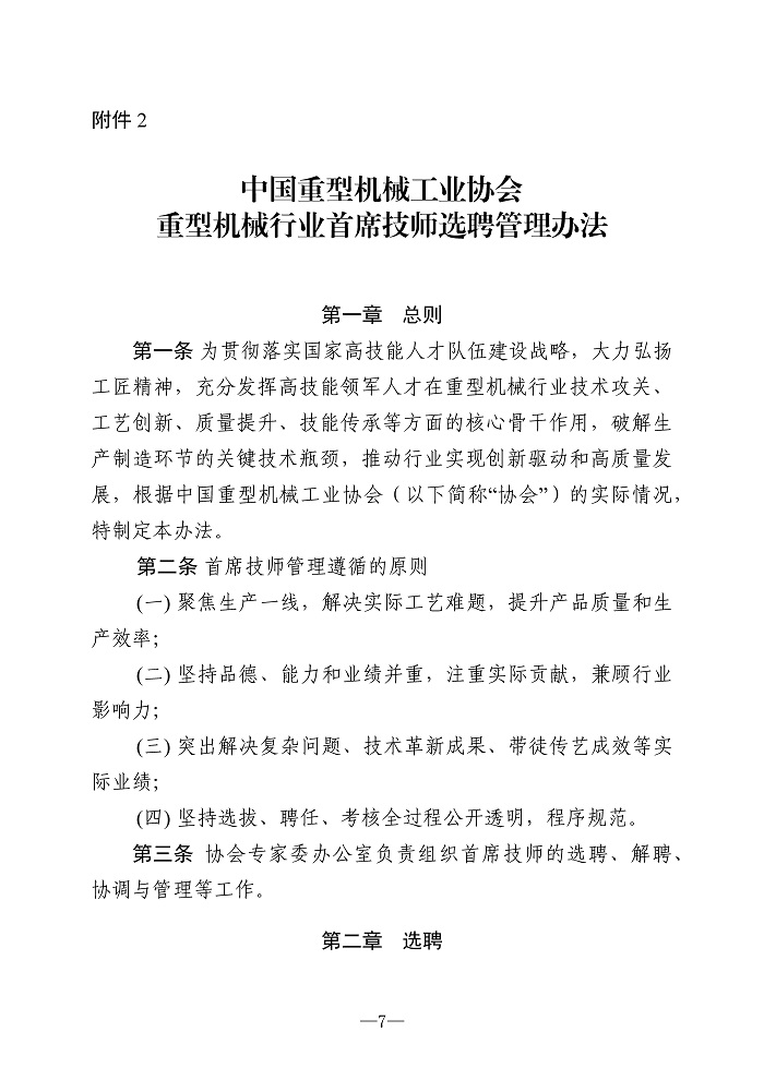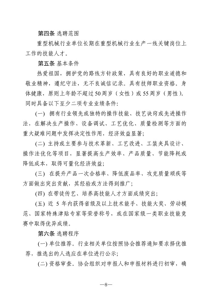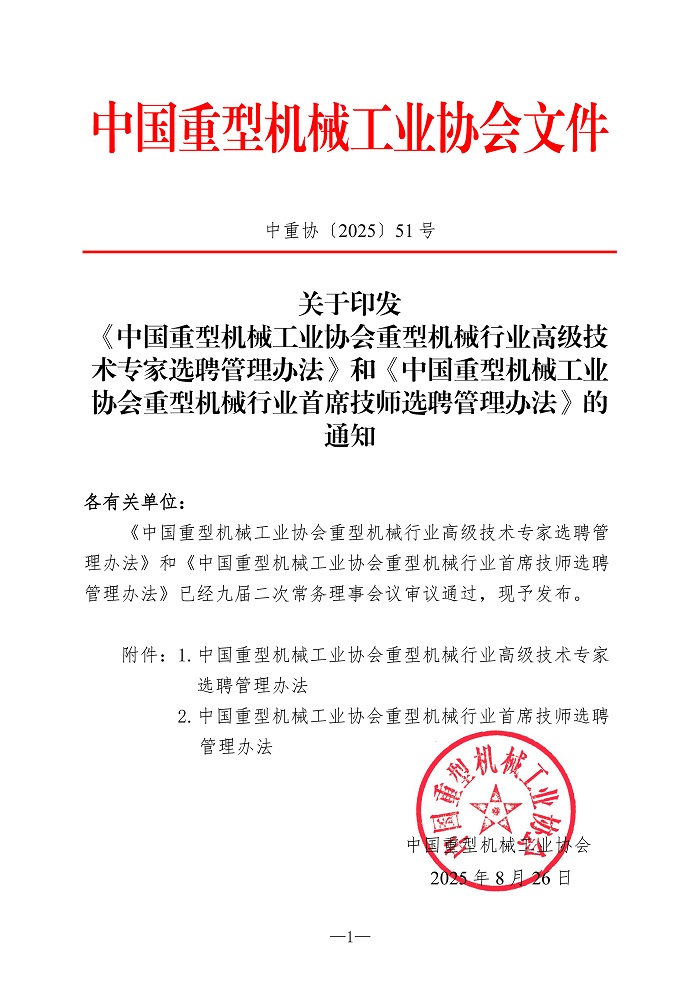 关于印发《中国重型机械工业协会重型机械行业高级技术专家选聘管理办法》和《中国重型机械工业协会重型机械行业首席技师选聘管理办法》的通知