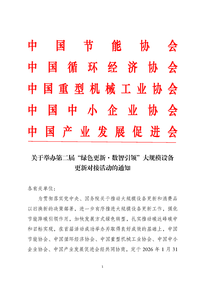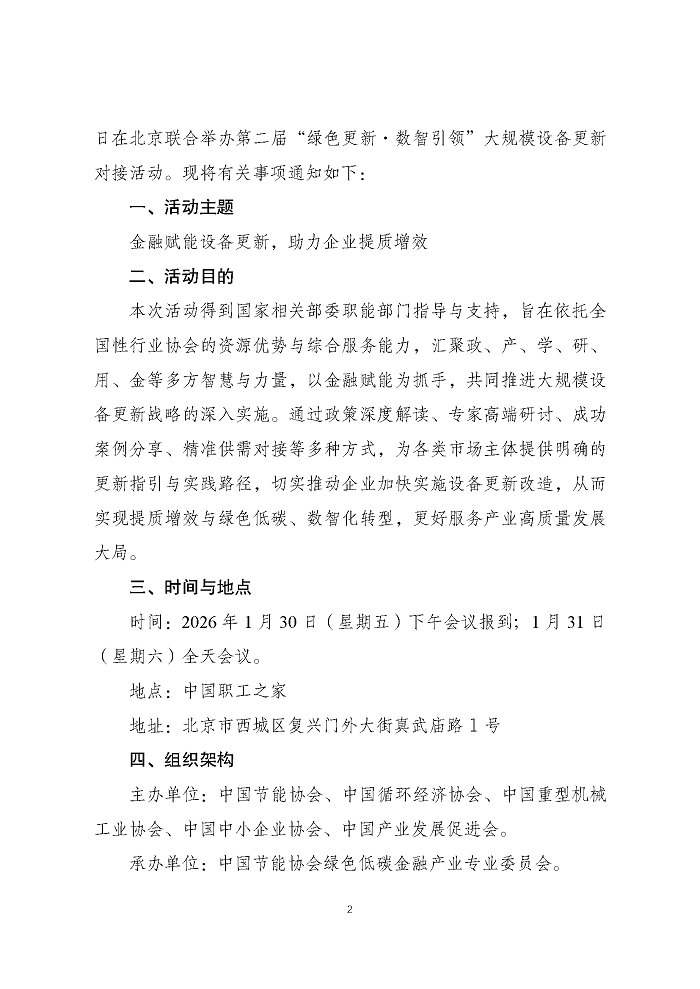 关于举办第二届“绿色更新·数字引领”大规模设备更新对接活动的通知