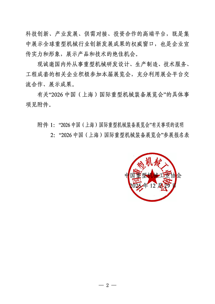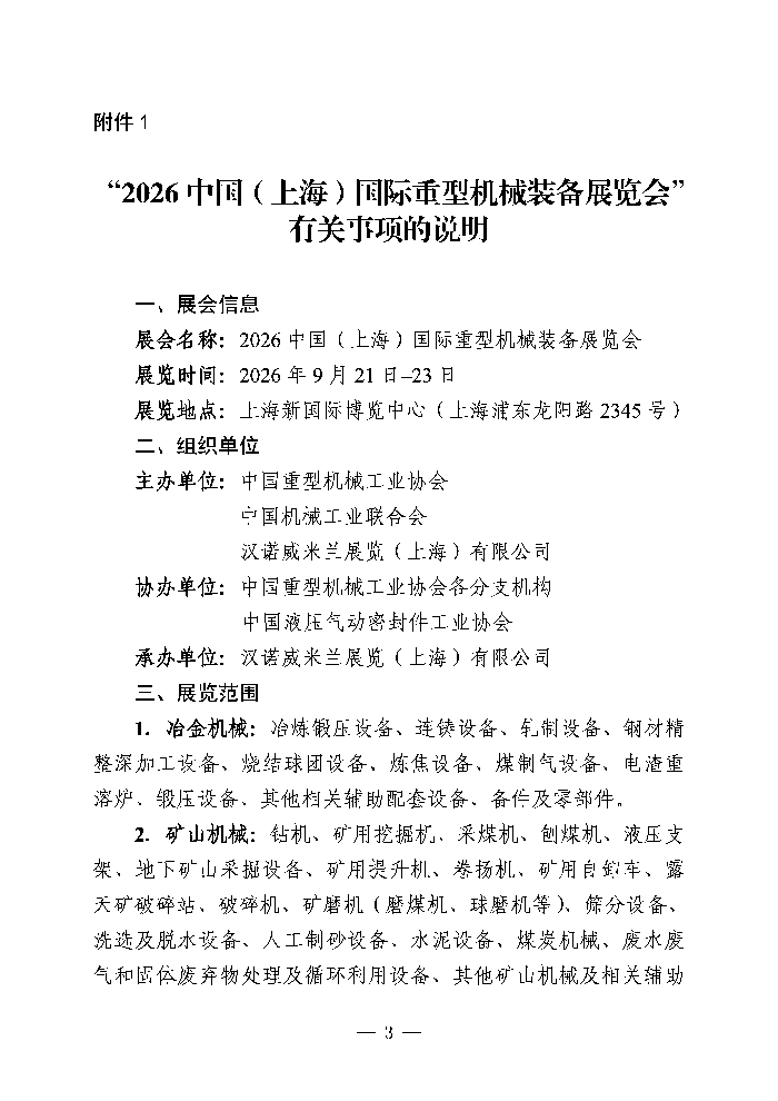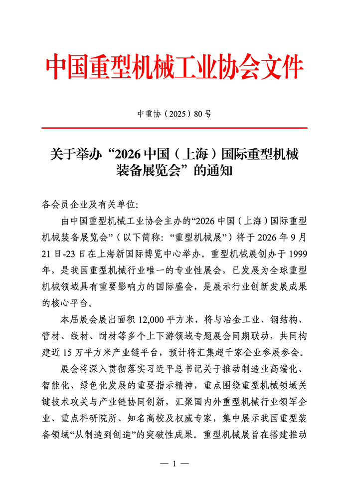 关于举办“2026中国(上海)国际重型机械装备展览会”的通知