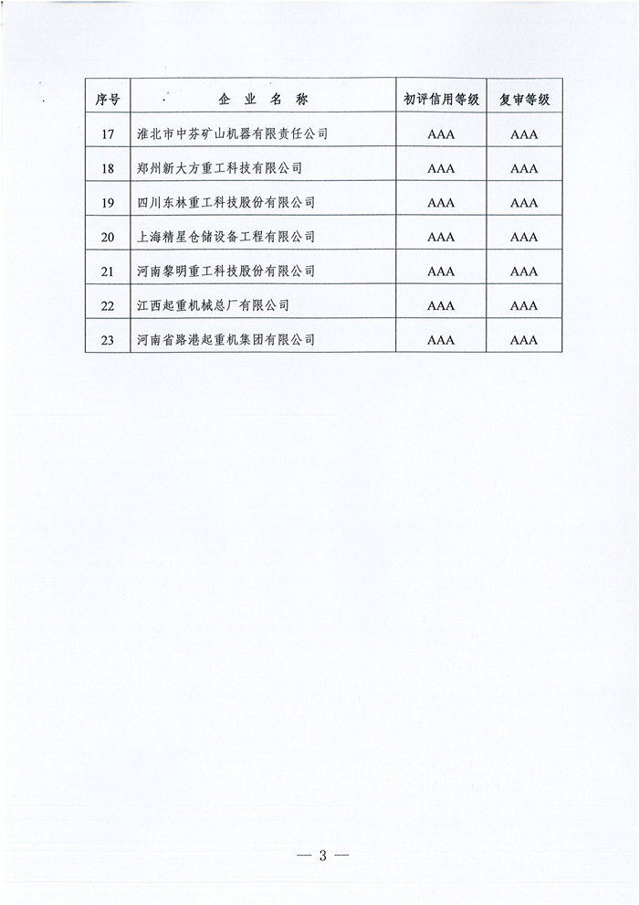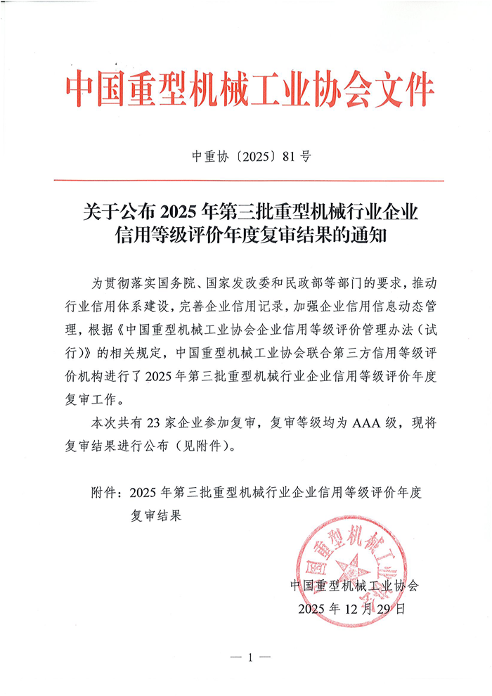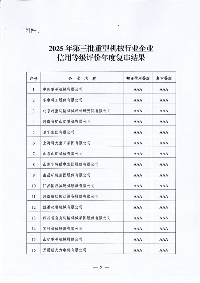 关于公布2025年第三批重型机械行业企业信用等级评价年度复审结果的通知