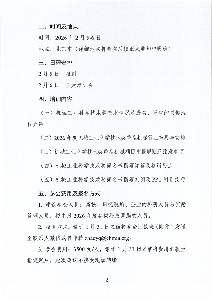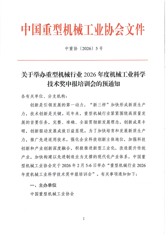 关于举办重型机械行业2026年度机械工业科学技术奖申报培训会的预通知