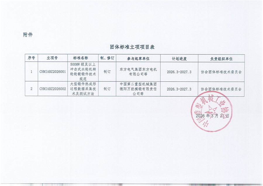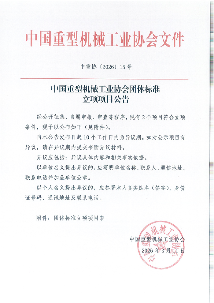 中国重型机械工业协会团体标准立项项目公告