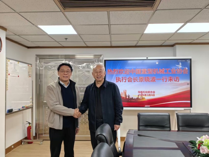 日,中国重型机械工业协会副会长景晓波走访海南省石油天然气和化学工业联合会,与会长廖强座谈交流,洽谈合作。