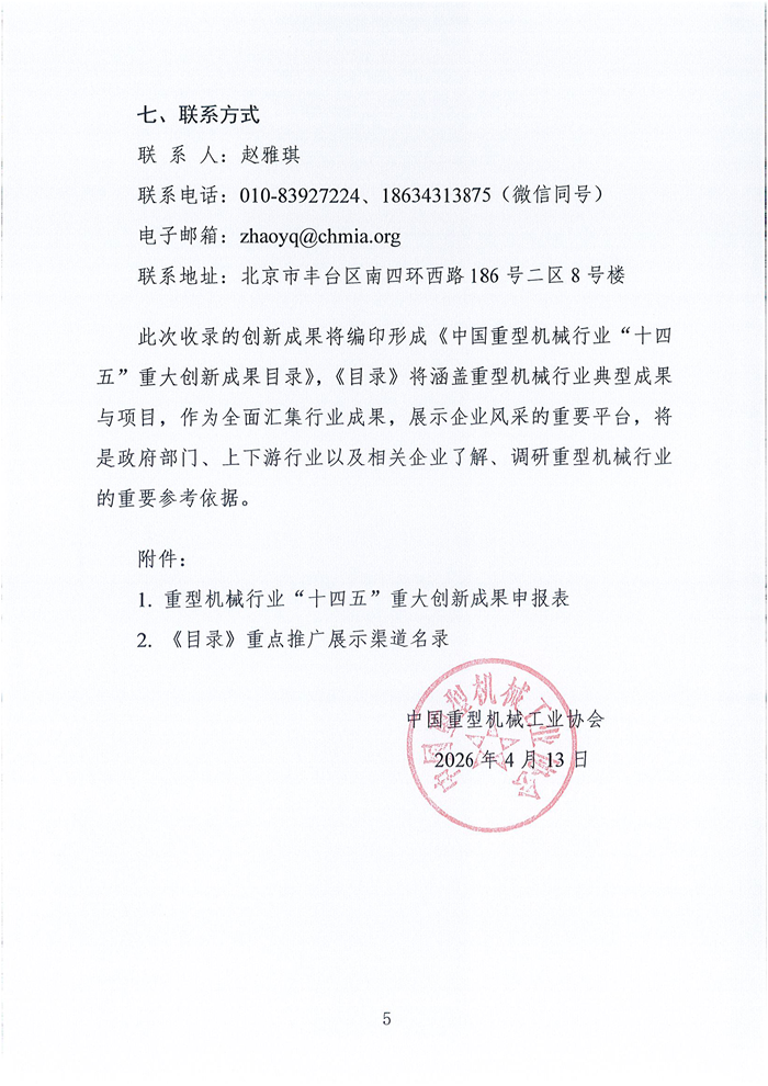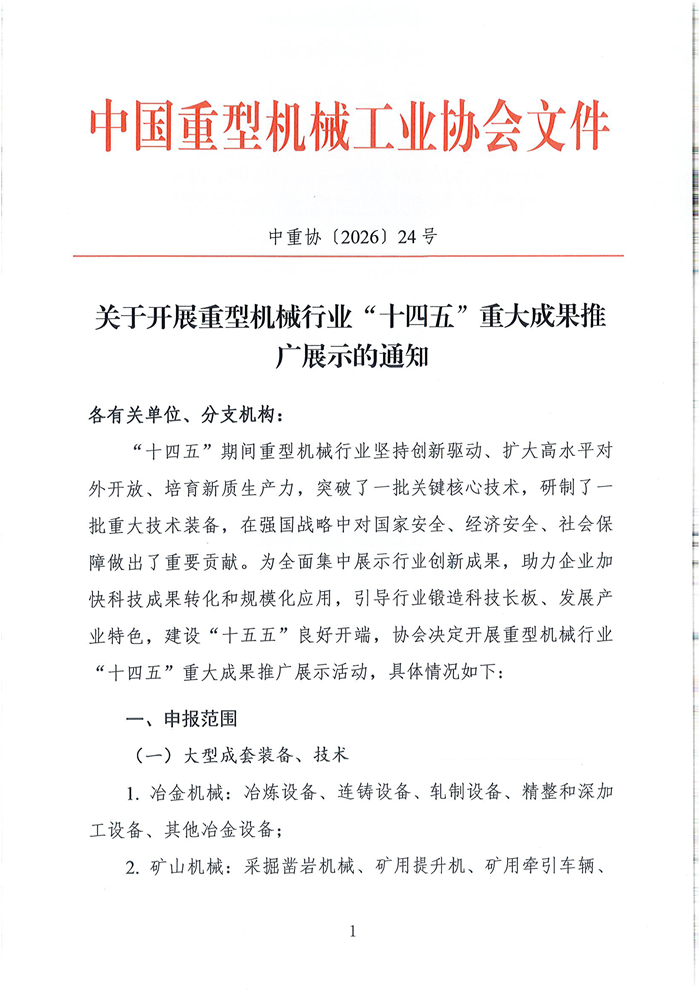 关于开展重型机械行业“十四五”重大成果推广展示的通知