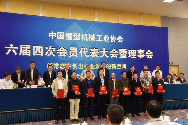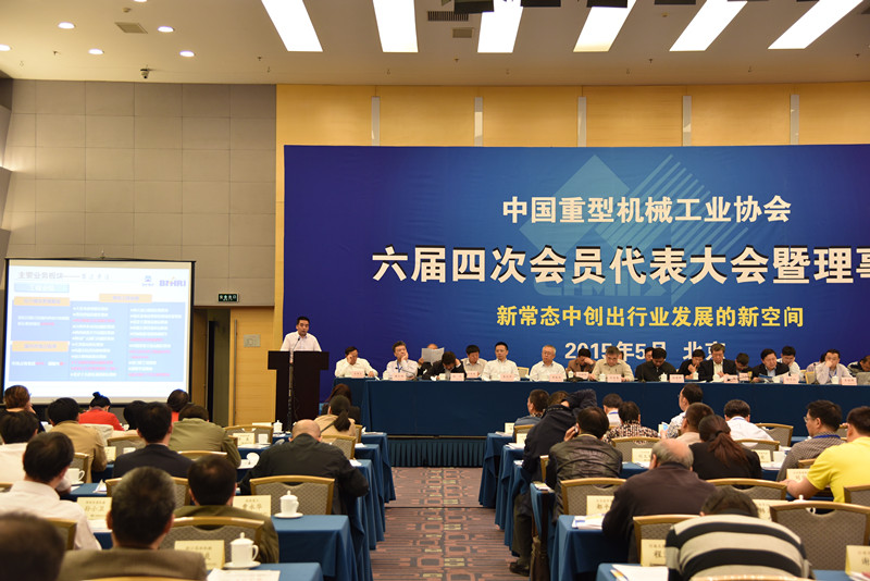 中国重型机械工业协会六届四次会员代表大会暨理事会于2015年5月12日在北京召开。理事会单位代表、会员代表、分支机构秘书长和特邀代表等共 151 个单位的 183 人参加了会议。原机械工业部副部长孙昌基、中国机械工业联合会执行副会长杨学桐、特别顾问蔡惟慈,工信部景晓波副局长,国家质检总局特种设备局调研员尚洪、北京起重运输机械设计研究院院长刘小虎等领导应邀出席了会议。
